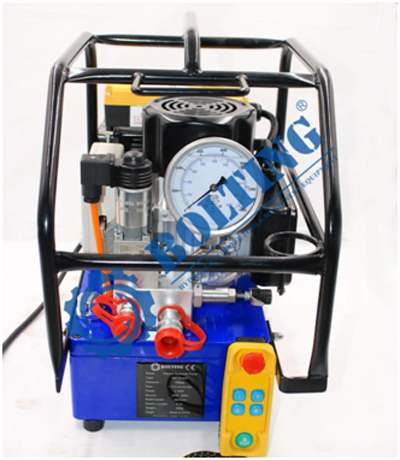 ● 無(wú)線遙控?cái)?shù)顯全自動(dòng)液壓扭矩泵采用三級(jí)柱塞泵,無(wú)刷電機(jī)(不產(chǎn)生火花)設(shè)計(jì),低轉(zhuǎn)速,散熱狀況良好,配有液壓油濾清器,液壓油可用300小時(shí)以上;